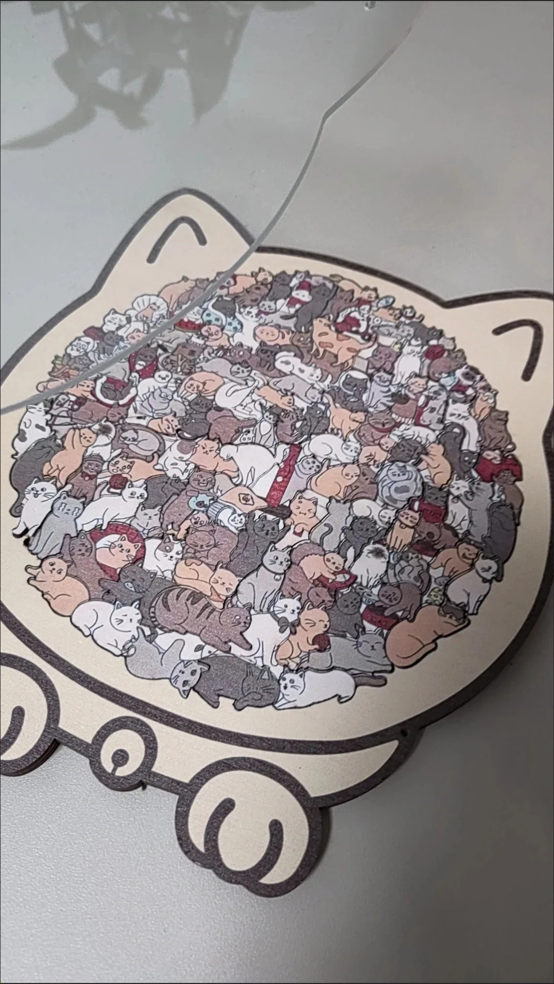 Featuring intricate cat-themed art — from playful paws to elegant tail swirls — this puzzle transforms into a charming décor piece once completed. Place it on a shelf, frame it on a wall, or let it spark conversation in your creative corner. It’s more than a puzzle… it’s a piece of art that brings personality to your space.