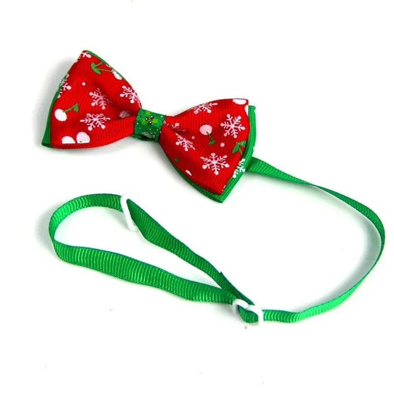Add some festive flair to your furry friend's wardrobe with our Christmas Cat Bow Tie Bow Strap! This cute accessory will make your cat stand out during the holiday season. The perfect combination of style and comfort, your beloved pet will look dashing in this bow tie. These assorted small pet ties bring festive flair with Christmas-themed designs, featuring snowflakes, stripes, and other adorable patterns in classic red, white, and green colors.