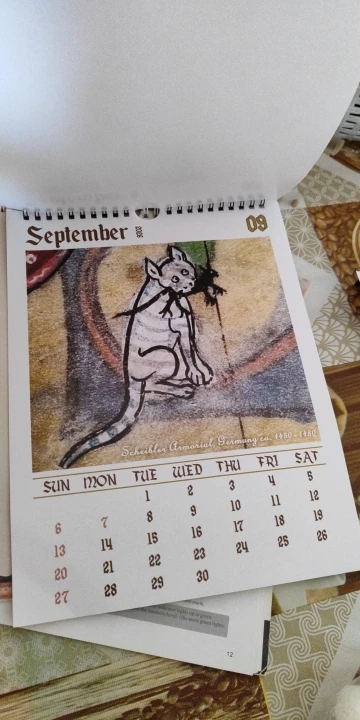 cool calendars, excellent medieval cats. got the same the calendar both yeats for 2025 and 2026 (((((