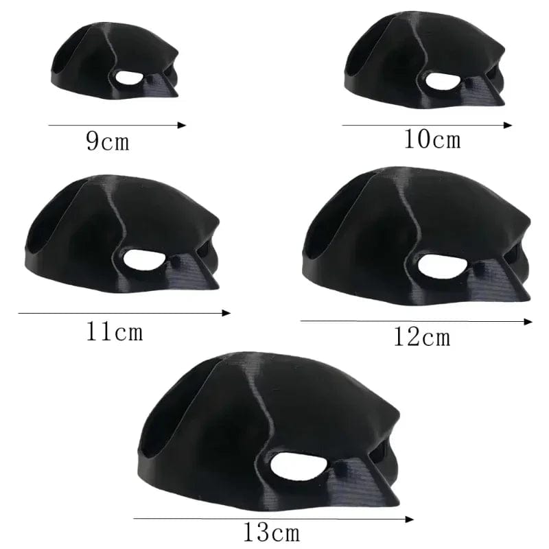 A: Measure your cat’s head circumference and refer to the size guide: for example, a 9cm mask fits a 25cm head circumference.